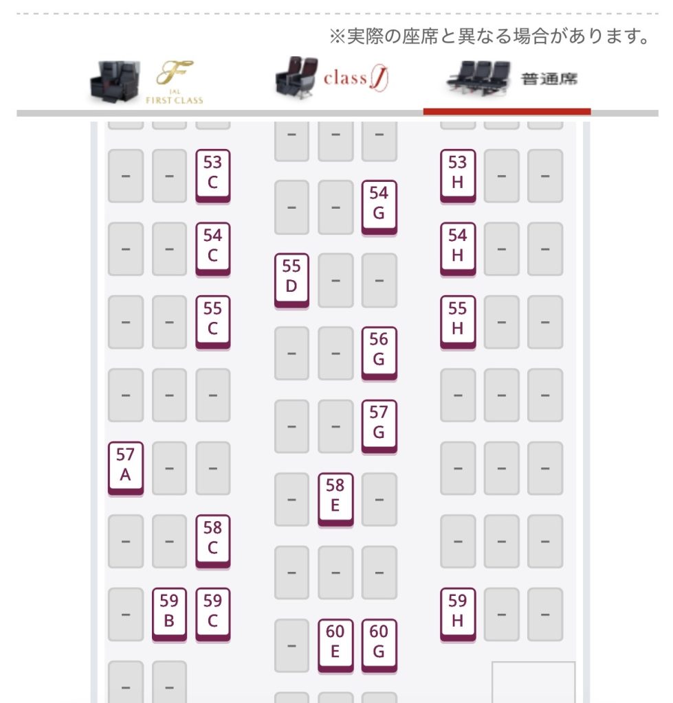今回当初は56Hで座席指定をしました。私自身は、予約管理画面から隣の56Jも指定可能です。無論、56Kは知り合いでは無いので、隣に自ら飛び込むことはありませんが。