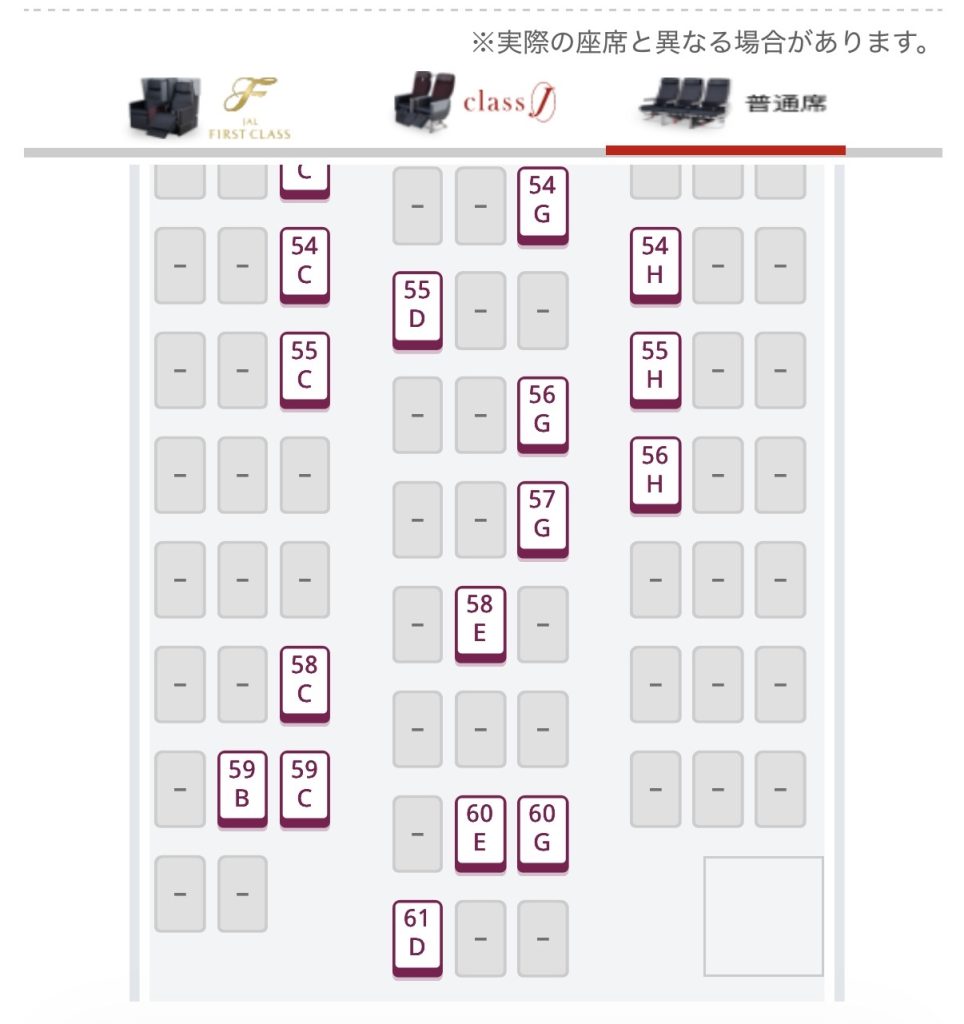 今回確認したのは普通席。クラスJでの隣席ブロックは僕は聞いたことがないですが、情報があればお待ちしております。