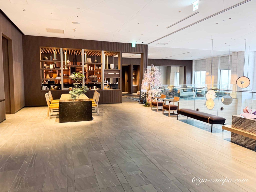 到着すると、ホテルの自動ドアが静かに開き、木の香りが漂うロビーが迎えてくれます。吹き抜けの空間は開放感があり、自然光が差し込む落ち着いた雰囲気。チェックインカウンターではスタッフの方が笑顔で迎えてくれ、最初から丁寧で温かい印象を受けました。