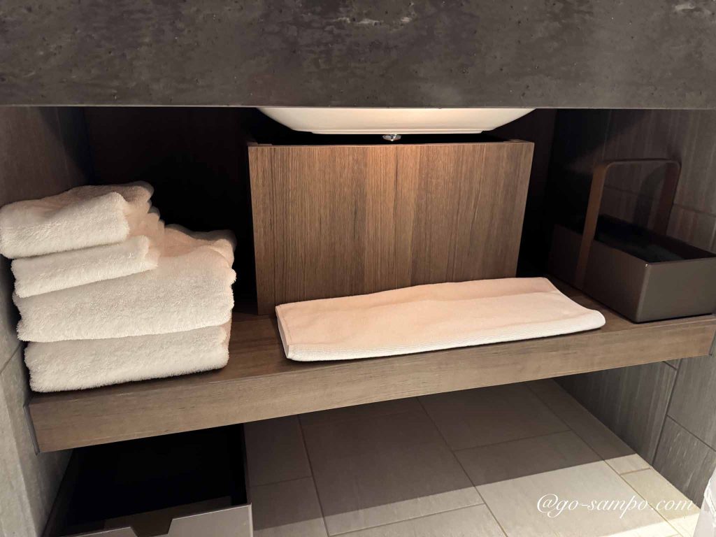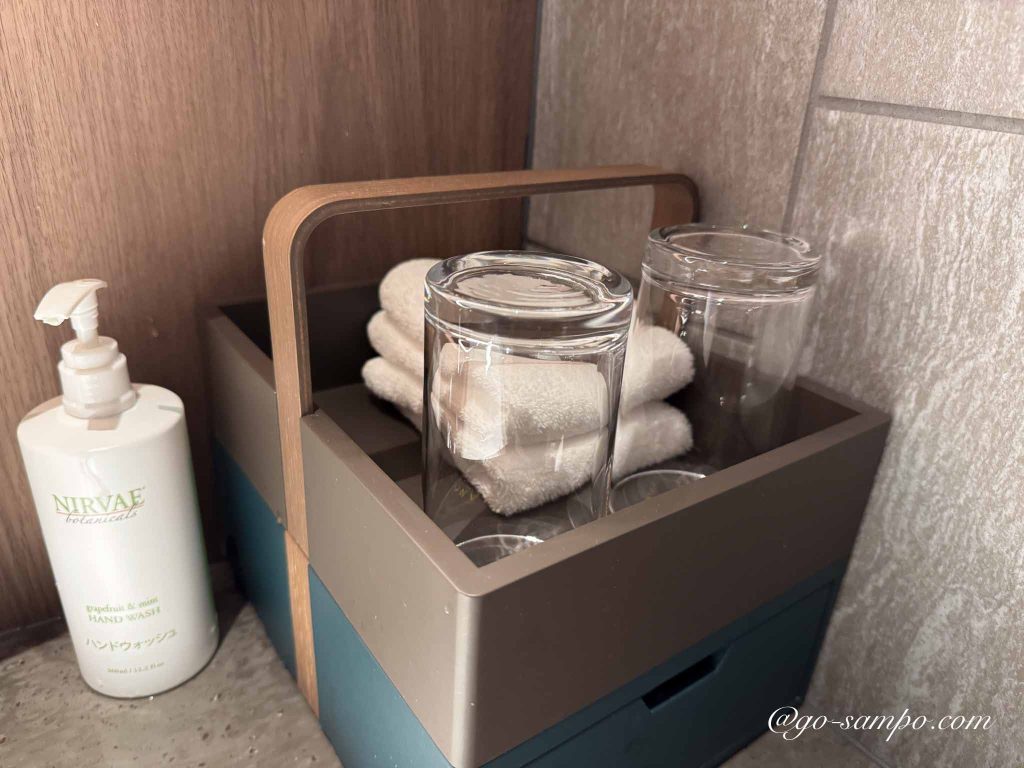 バスルームは独立型で、バスタブのないシャワールーム。赤ちゃん用にベビーバスの貸出にも対応しており、赤ちゃん連れには特にありがたい設備です。シャワーは水圧がしっかりしていて温度調整もスムーズ。