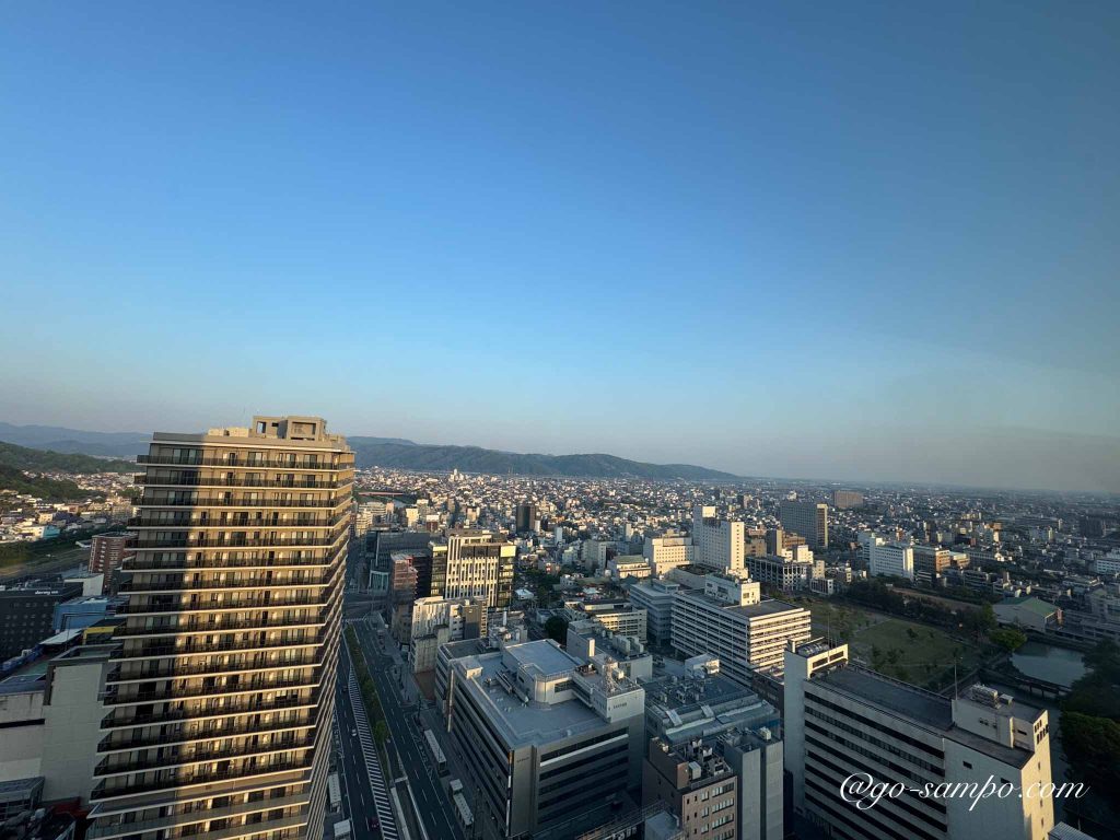 今回宿泊したのは、25階の高層フロア。カーテンを開けた瞬間、目の前に広がるのは福井の街並みと、その先に連なる山々の雄大な景色でした。