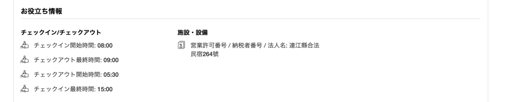 東引のホテルで特殊なのは、チェックインアウト時刻がどこも早朝に集中していること。予約時にこの情報を見ると戸惑うかもしれませんが、これは東引の船の発着時刻が早朝に集中しているからです。