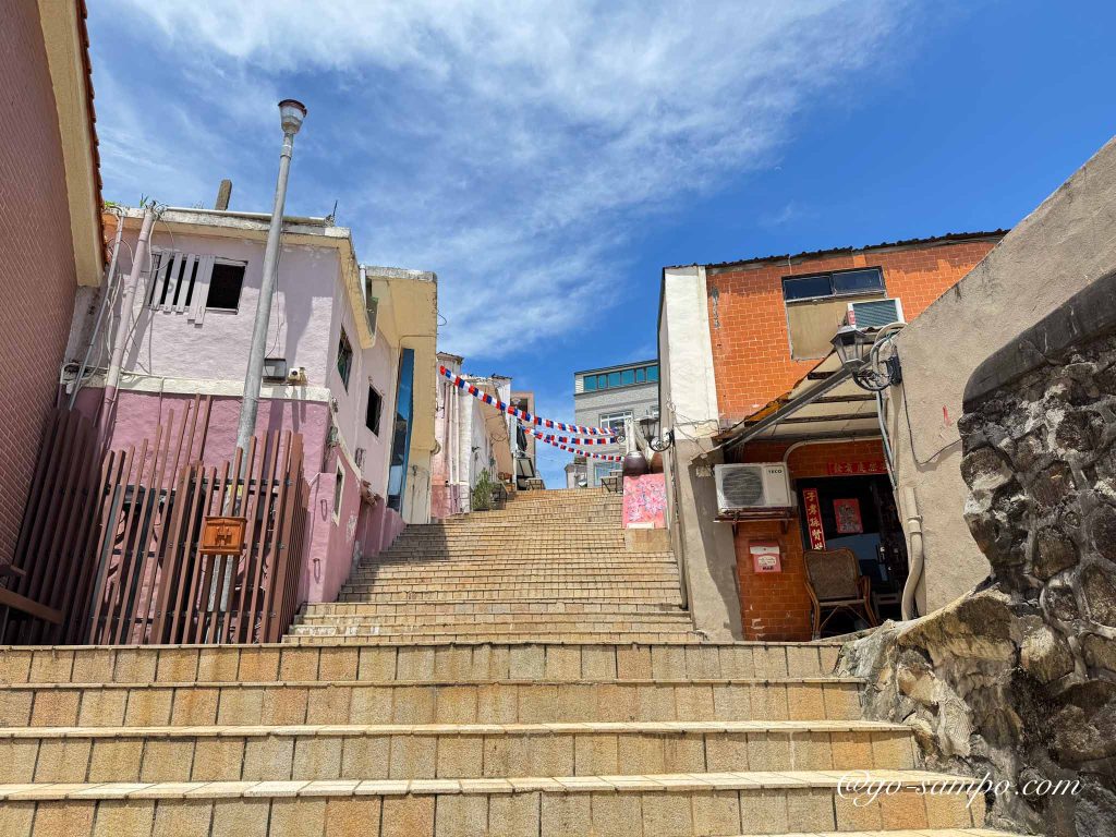 東引の多くのホテルは島の入口である中柱港から車で5-10分程度の場所にありますが、傾斜に沿った街並みで徒歩でのアクセスは相当しんどいです。かつ公共交通機関が無い(タクシーもほぼ無い)というのも理解しておく必要があります。