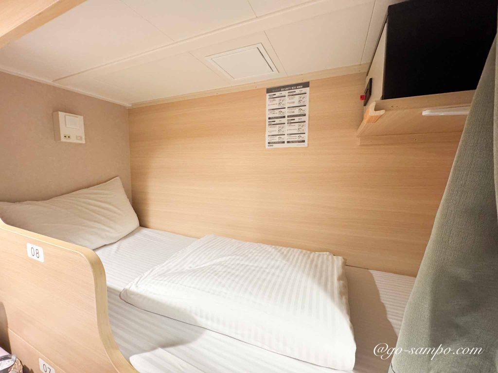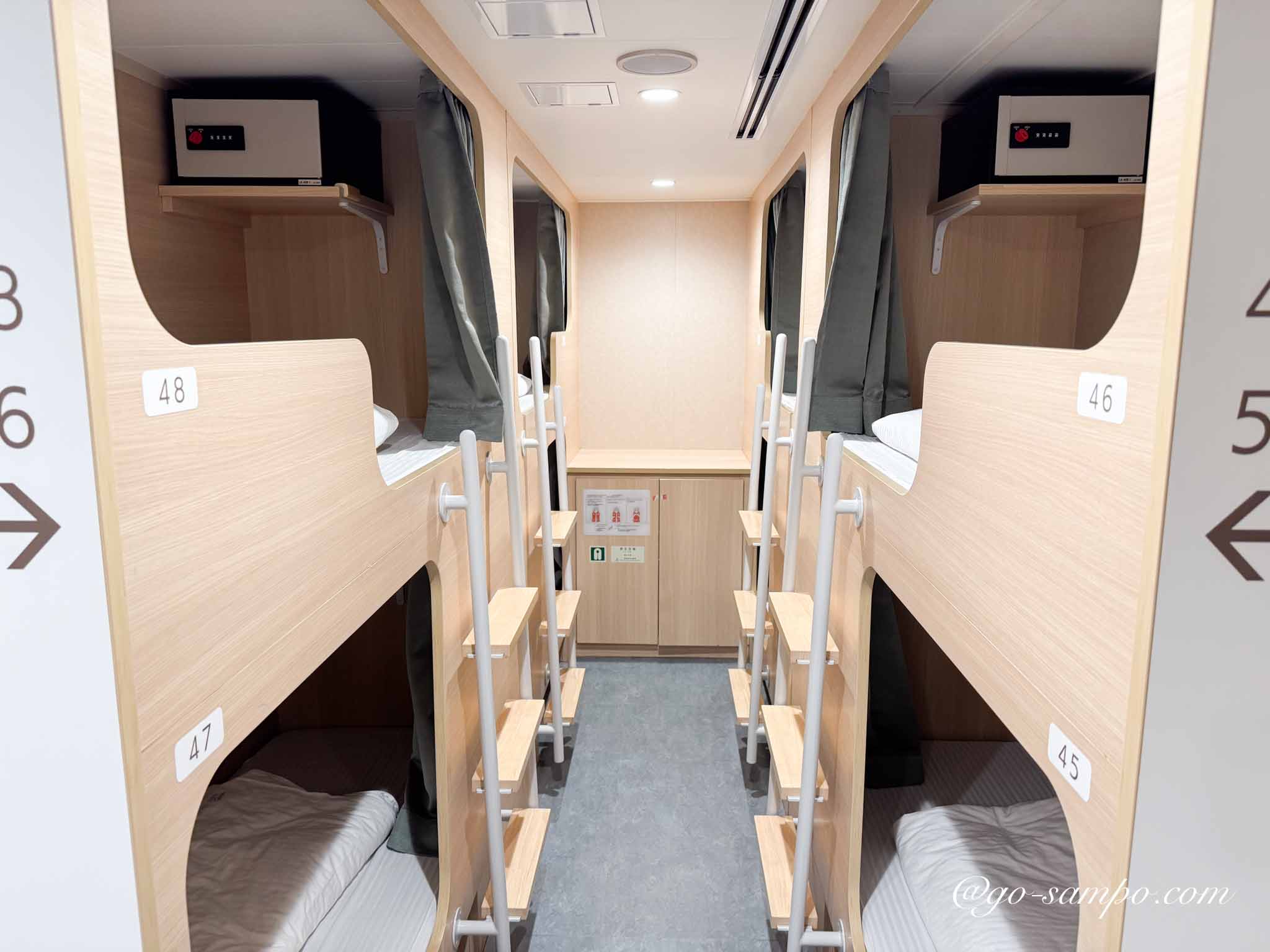 今回は上段ベッドでしたが、スーツケースを下にしか置けないので、個人的には下段の方が荷物へのアクセスが楽だと感じました。