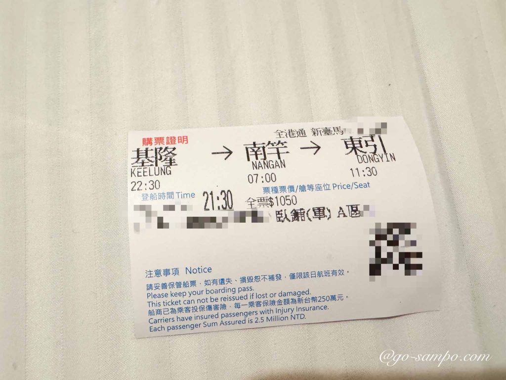 南竿まで台北から飛行機で行って、そこから船に乗る方法もあるのですが、夜行フェリーの方が時間を有効に使えてかつ安いので個人的にはこちらがおすすめ。