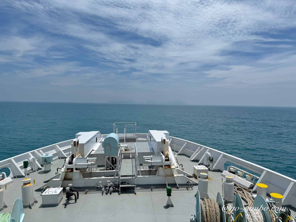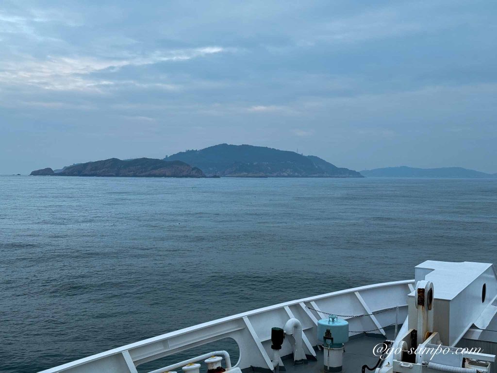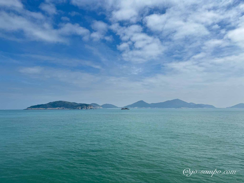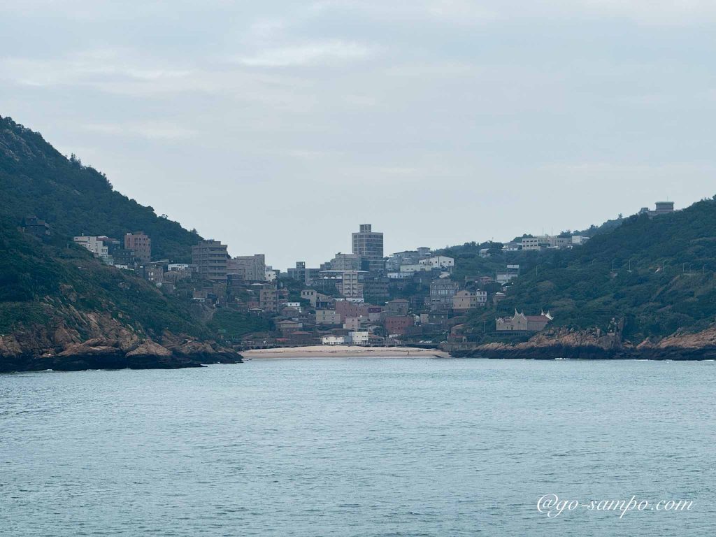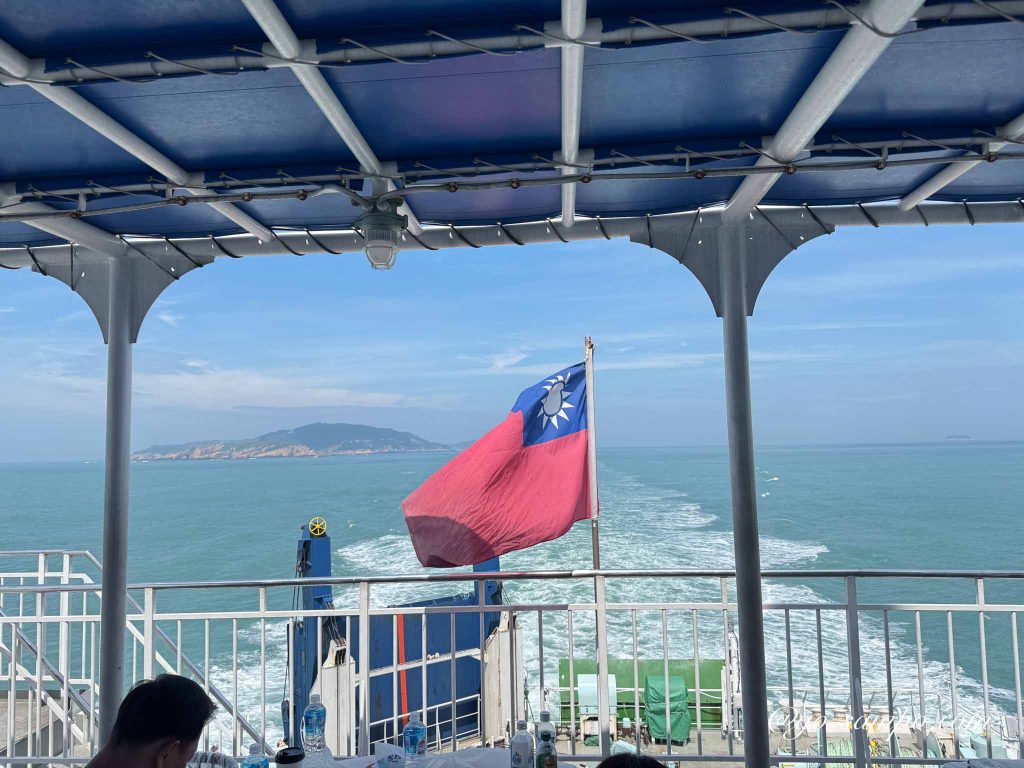外に出てみると、ちょうど船は南竿島(Nangan)と北竿島(Beigan)が目の前に見えてきていました。遠くに二つの島影が並んでいます。
