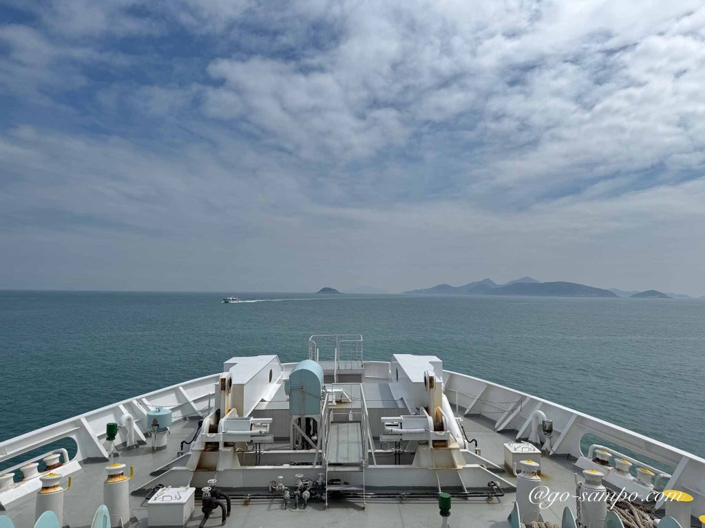 途中で航路の左手に亮島(Liangdao)が見えるはずですが、この日は曇りで視界が悪く、確認できませんでした。